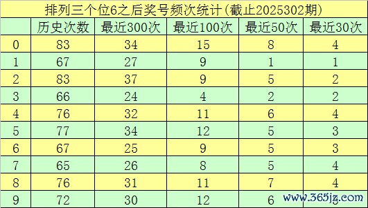 第三位杀号:第三位上期出现奖号6,该位历史上奖号6已开出了733次,最近100依次三位开出6时,下期号码0-9分离落号:号码0→15次,5、9→12次,4、8→11次,1、2、6→9次,7→8次,3→4次。